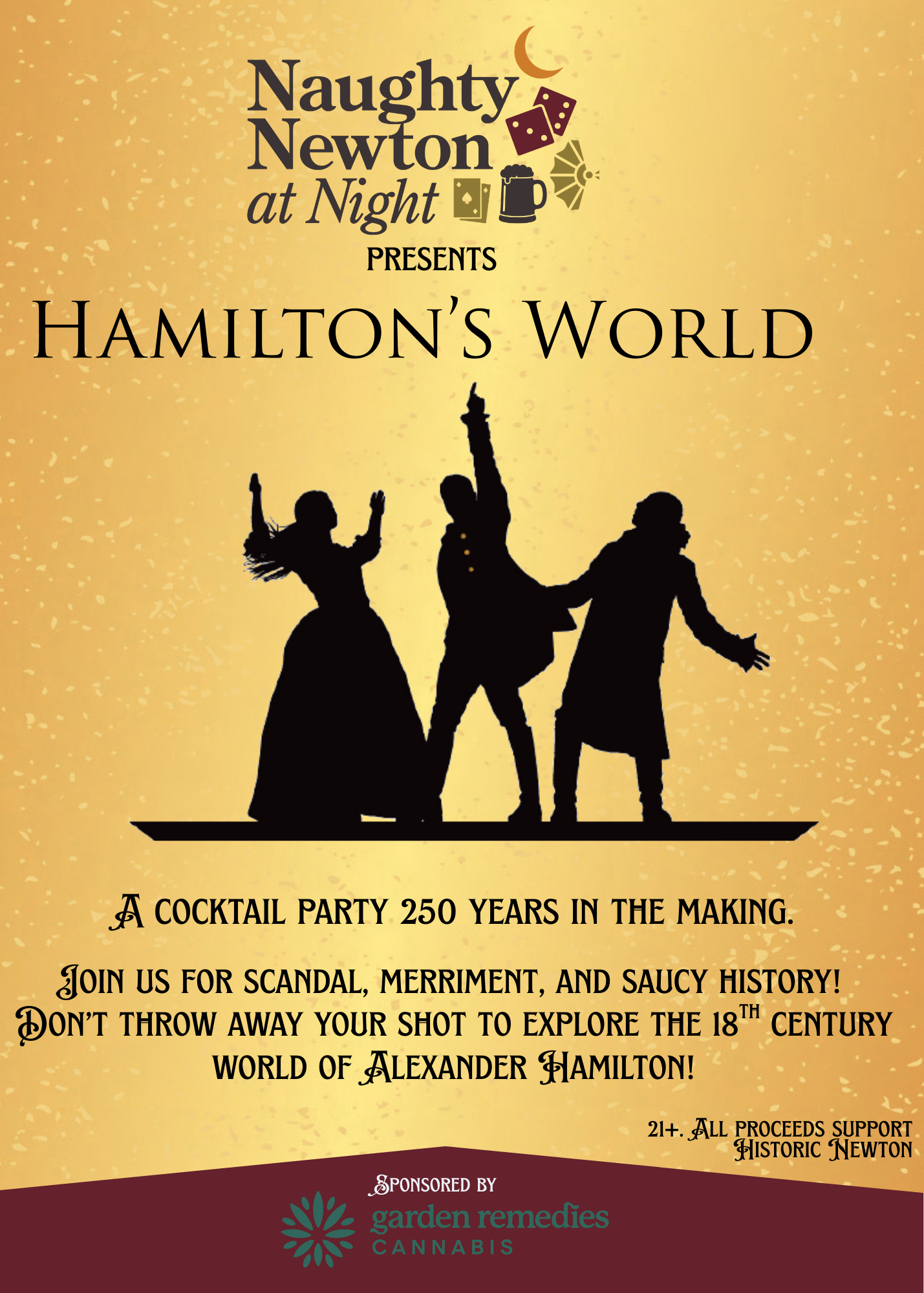 Join Historic Newton for the historic cocktail party of the year! This year Naughty Newton at Night will celebrate all things Alexander Hamilton and Hamilton the musical. Enjoy drinks and hors d'oeuvres while exploring the more scandalous sides of the 18th century. What was the favorite alcoholic drink of New England in the 1700s? Did […]